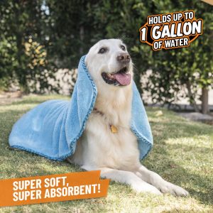 Furrocious is an ultra-plush. super absorbent microfiber pet drying towel that dries your four-legged friend in no time with its large 25 x 36 size that makes it easy to get every inch of them dry as a bone.