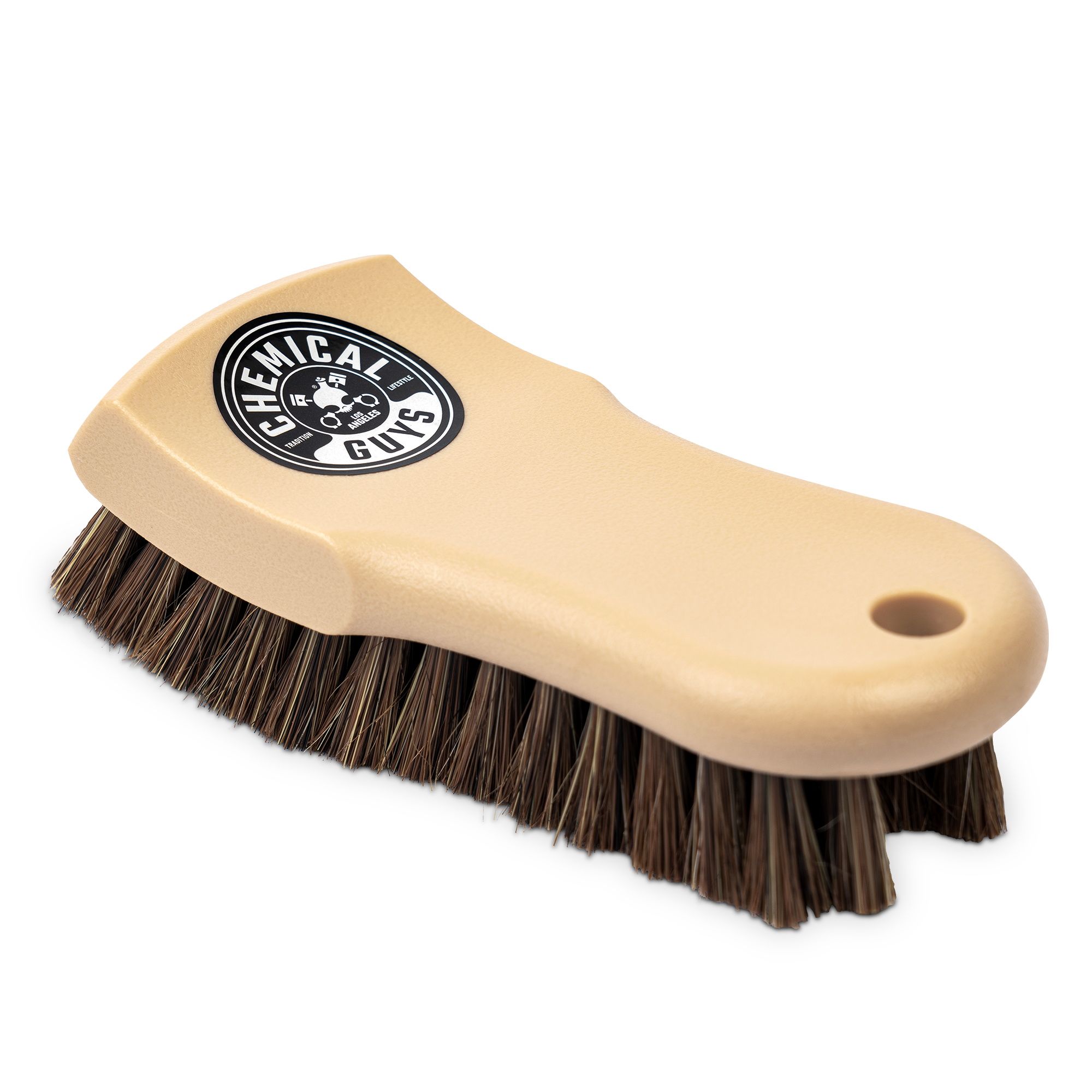 This brush offers a gentle. effective cleaning solution for your beloved leather surfaces. Crafted with synthetic horse hair bristles. it tackles dirt and stains while remaining gentle to protect your sensitive leather. The long bristles effortlessly reach deep into the pores of leather. fabric. canvas. and convertible tops. helping to break down and lift away embedded grime for a wonderfully thorough clean.