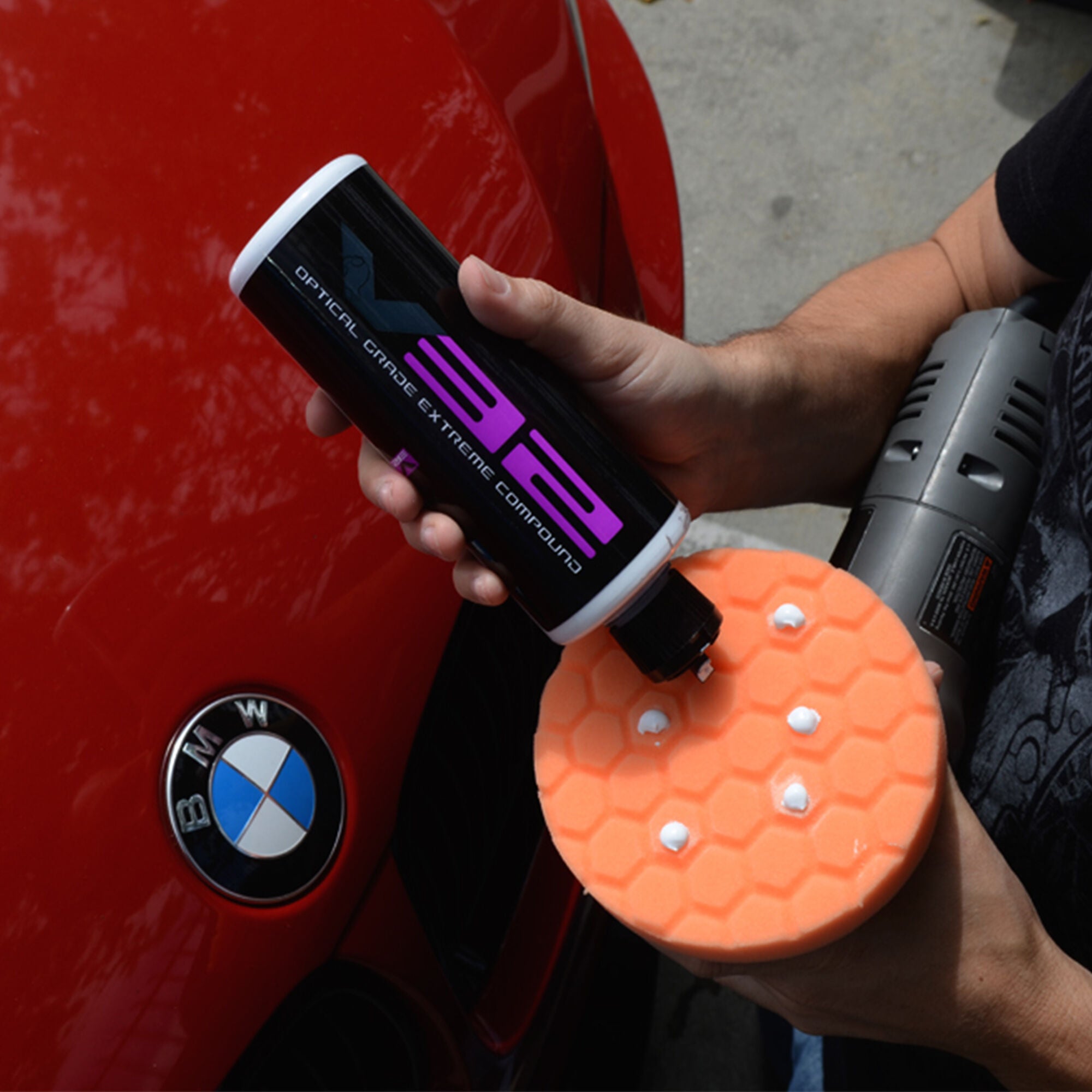 V32 Optical Grade Extreme Compound is our most abrasive compound and the first in the V-series. It eliminates deep scratches. heavy paint defects. and imperfections from super-hard paint finishes – setting up your vehicle for superior final polishing results.