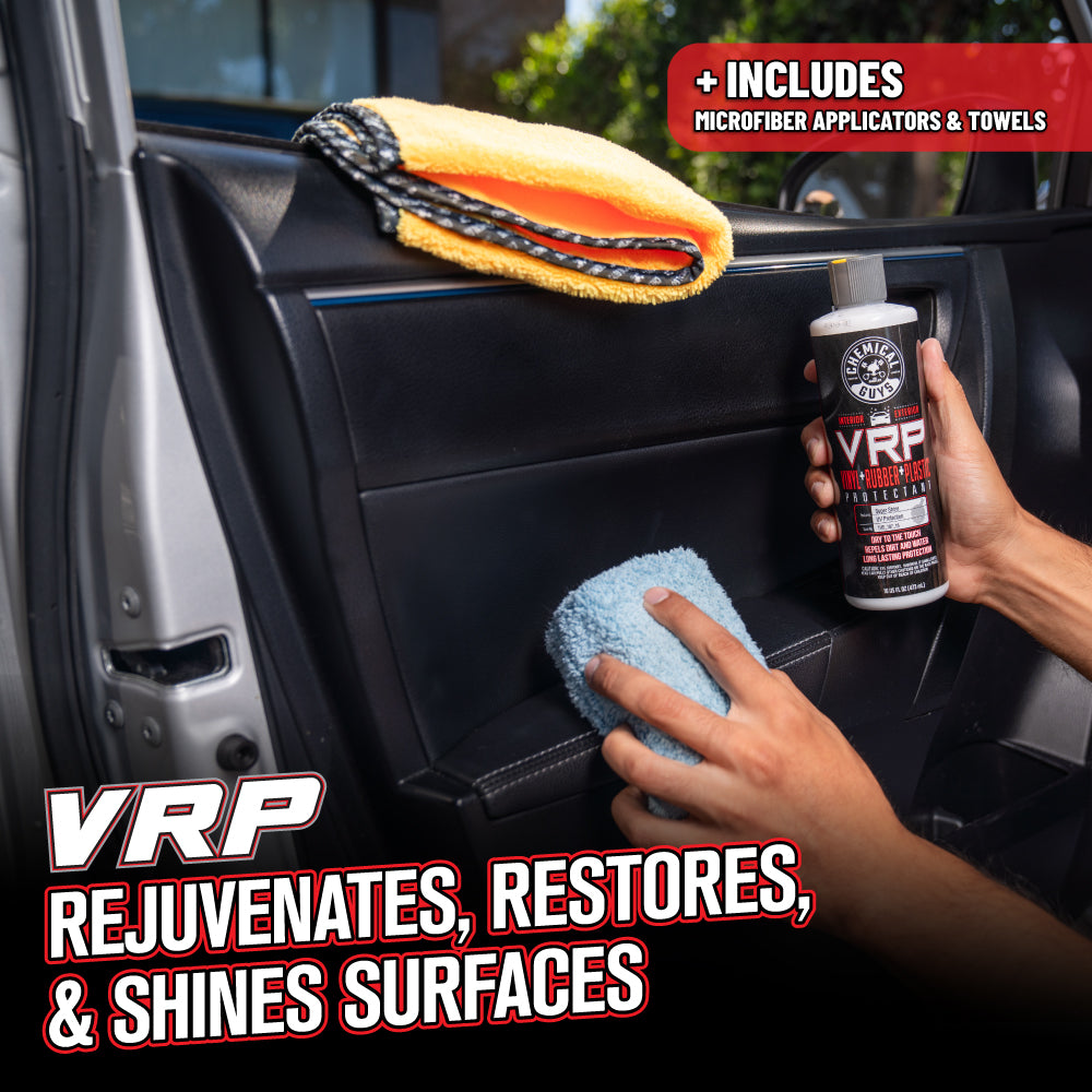 This kit is the easy way to revitalize your ride’s interior and leave it looking and smelling like new! Restore. protect. and shine trim. dashboards. and door panels with VRP. while New Car Smell Air Freshener lets you enjoy that fresh-off-the-lot scent with just a spray.?